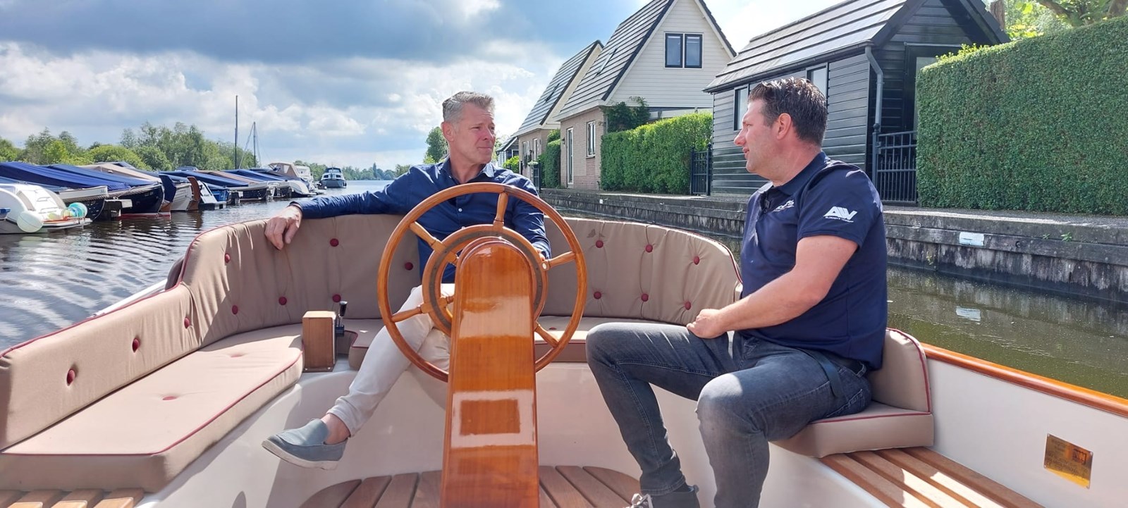 BREUKELEN- Voor de serie ’Passie voor watersport’ voer Watersport-TV crewlid Matthijs Kat met een sloep naar de Scheendijk in Breukelen. Daar had hij afgesproken met Arjan Koetsveld, de eigenaar van Koets Watersport.