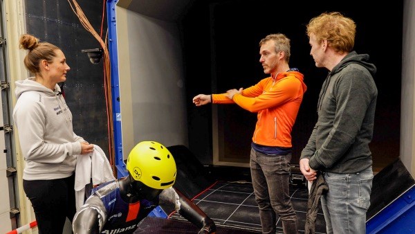 Wouter Terra, expert aerodynamica TU Delft en TeamNL (NOC *NSF): “Bij de ontwikkeling van dit kitefoil pak hebben we de aerodynamische kennis die we eerder opdeden bij TeamNL toegepast. Samen met WEEV Textiles, die zich richtte op snijveiligheid en textielontwerp, hebben we in onze windtunnel verschillende snijveilige stoffen getest in combinatie met aerodynamica. We onderzochten o.a. het effect van combinaties hiervan en van het dragen van een losse of strakke bib, het shirt dat de sporters krijgen van de organisatie. Het resultaat is een uniek pak dat sneller en veiliger is.”