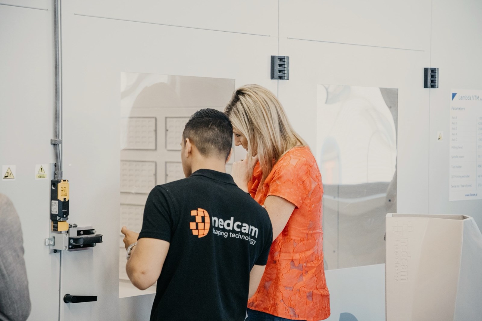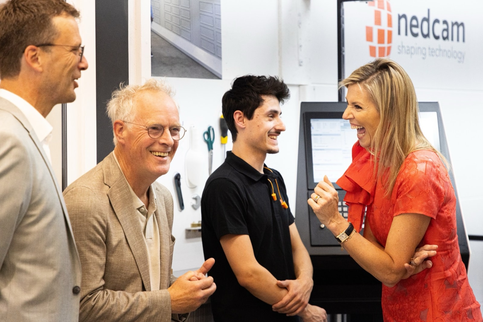 De koningin bezocht Nedcam met een speciale reden. Bij Nedcam staat circulariteit namelijk al jaren hoog op de agenda en is de transitie ingezet van een lineair naar een circulair productieproces met het gebruik van 3D printers. Met de inzet van deze nieuwe technologie worden circulaire kunststoffen toegepast en kunnen recyclebare mallen worden gerealiseerd.