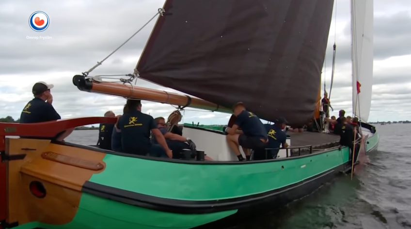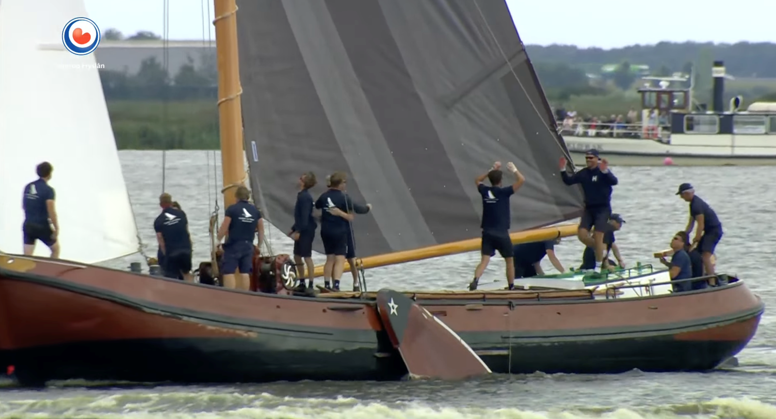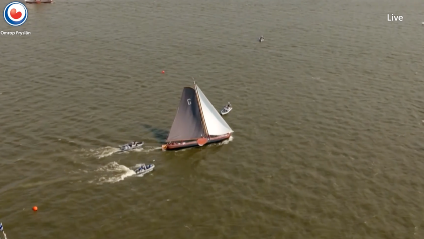 De wedstrijd in de baai van Lemmer begon met een algehele valse start. De tweede start was wel goed, behalve voor d’Halve Maen. Dat skûtsje belandde op een van de boeien van de startlijn, en moest een rondje draaien.
