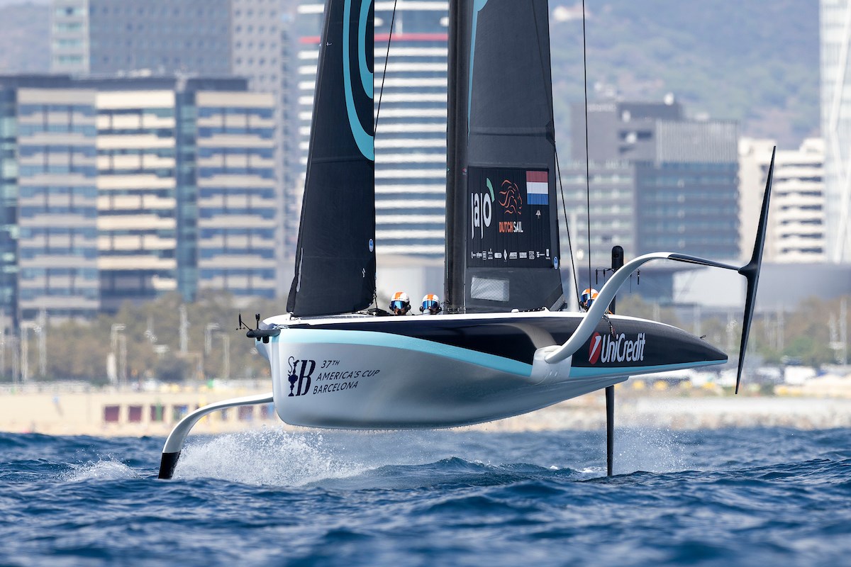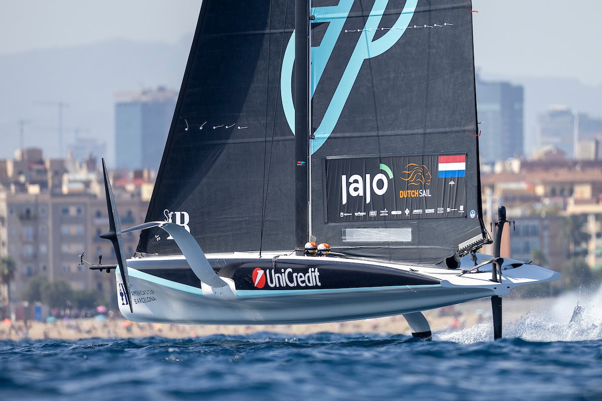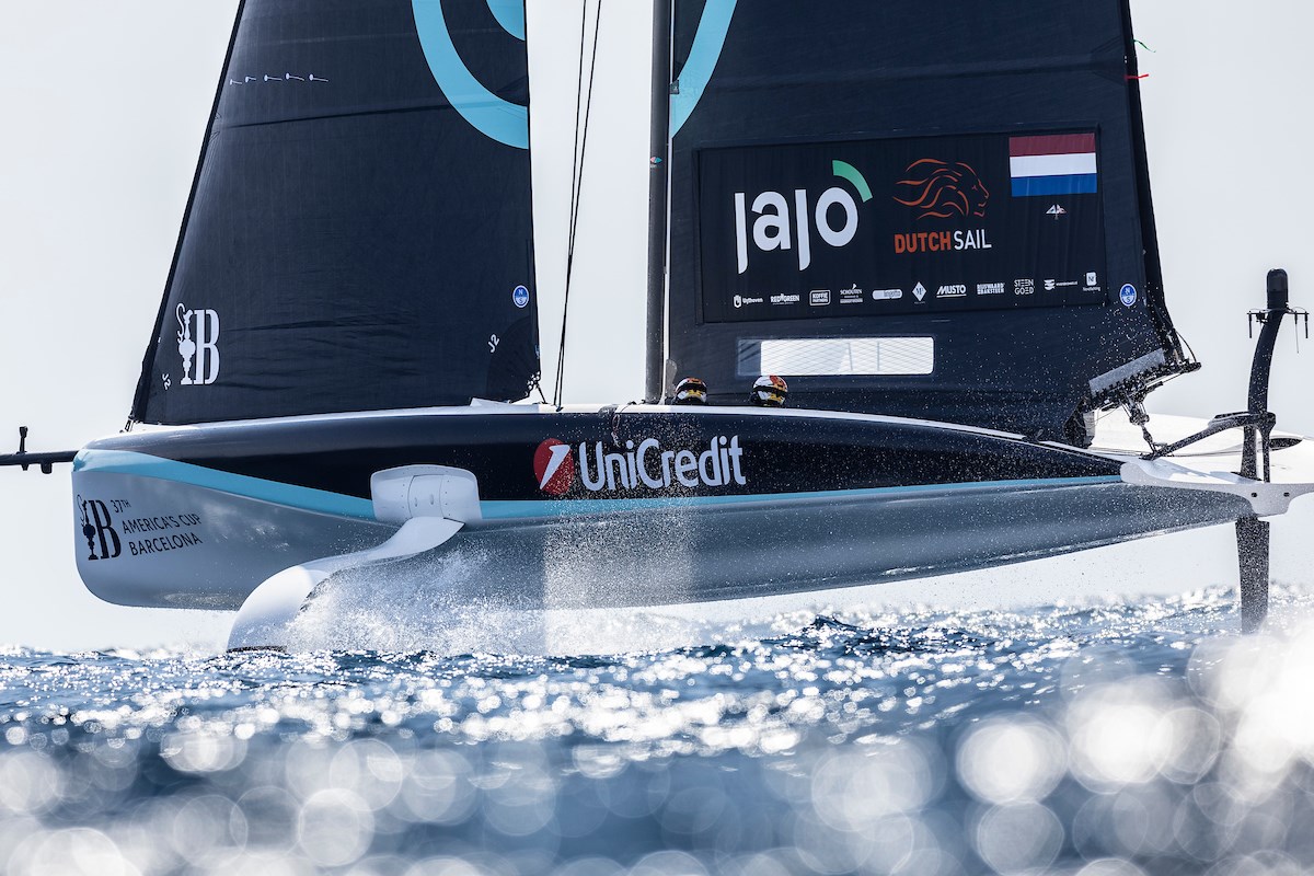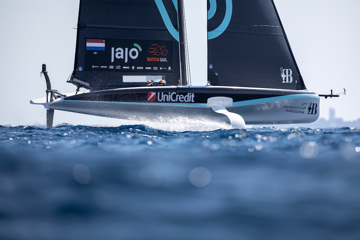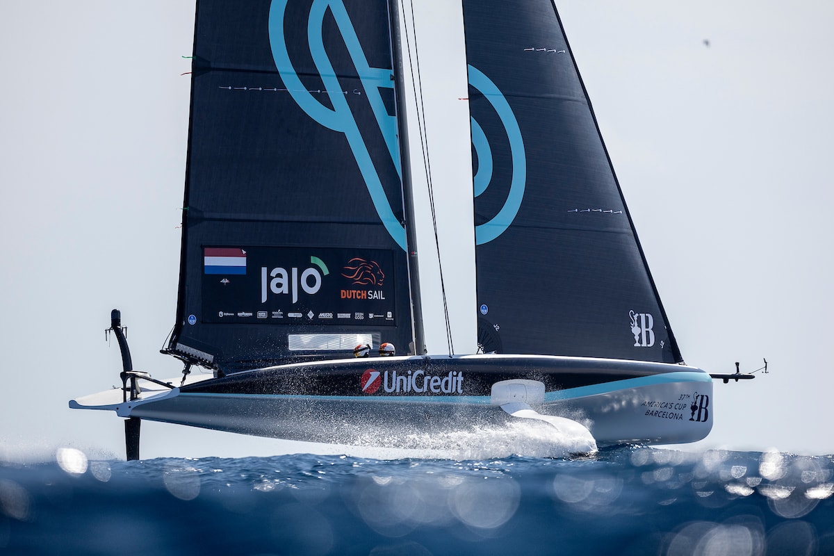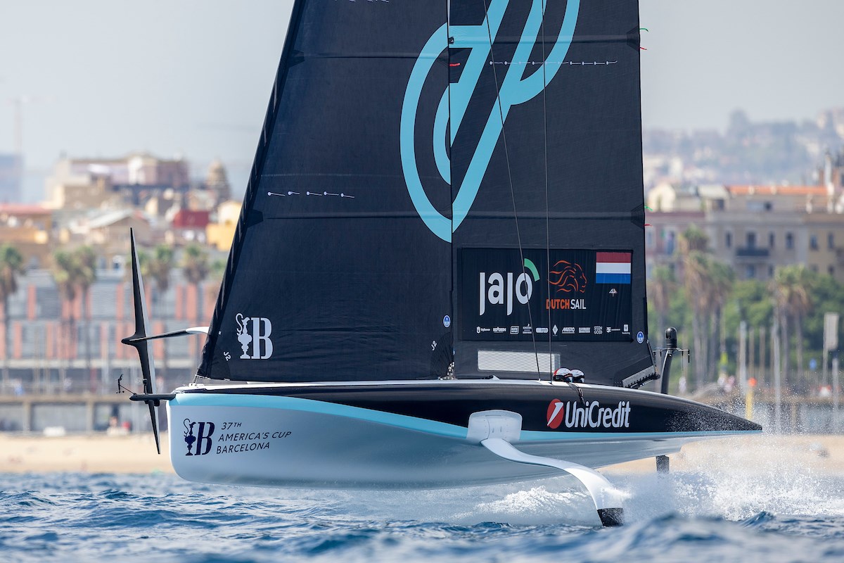 BARCELONA- De jeugdzeilers van JAJO Team DutchSail hebben deze week voor het eerst gevaren in de AC40. Zowel dinsdag als woensdag trainde het team voor de kust van Barcelona. Daar start woensdag de UniCredit Youth America’s Cup. Bart Lambriex, Paul Hameeteman, Bjarne Bouwer en Eliott Savelon zijn door coaches Pieter-Jan Postma en Cas van Dongen opgesteld in de basis.
