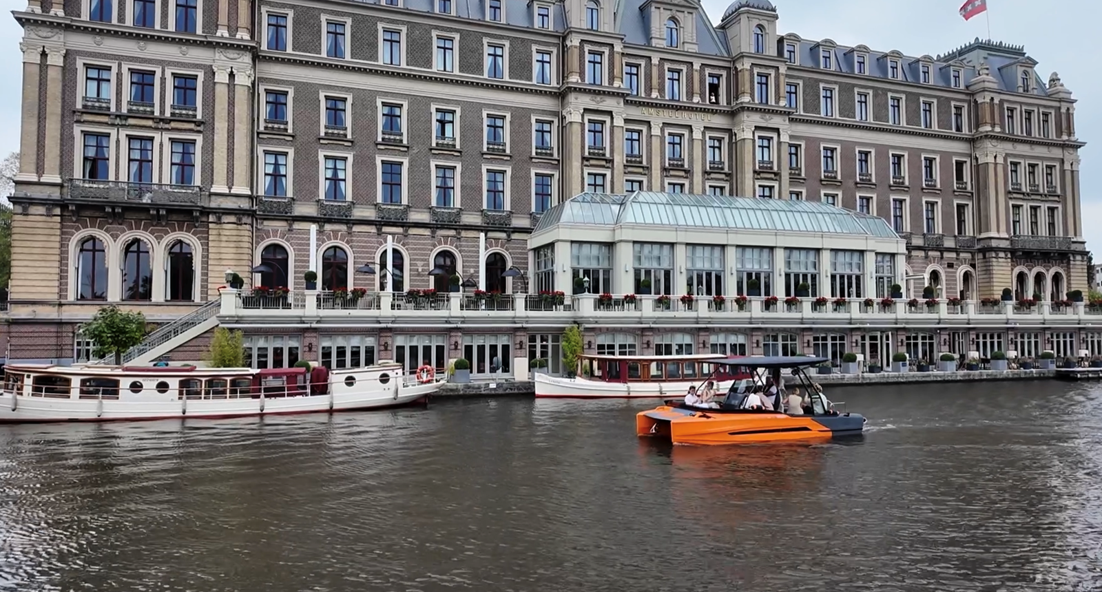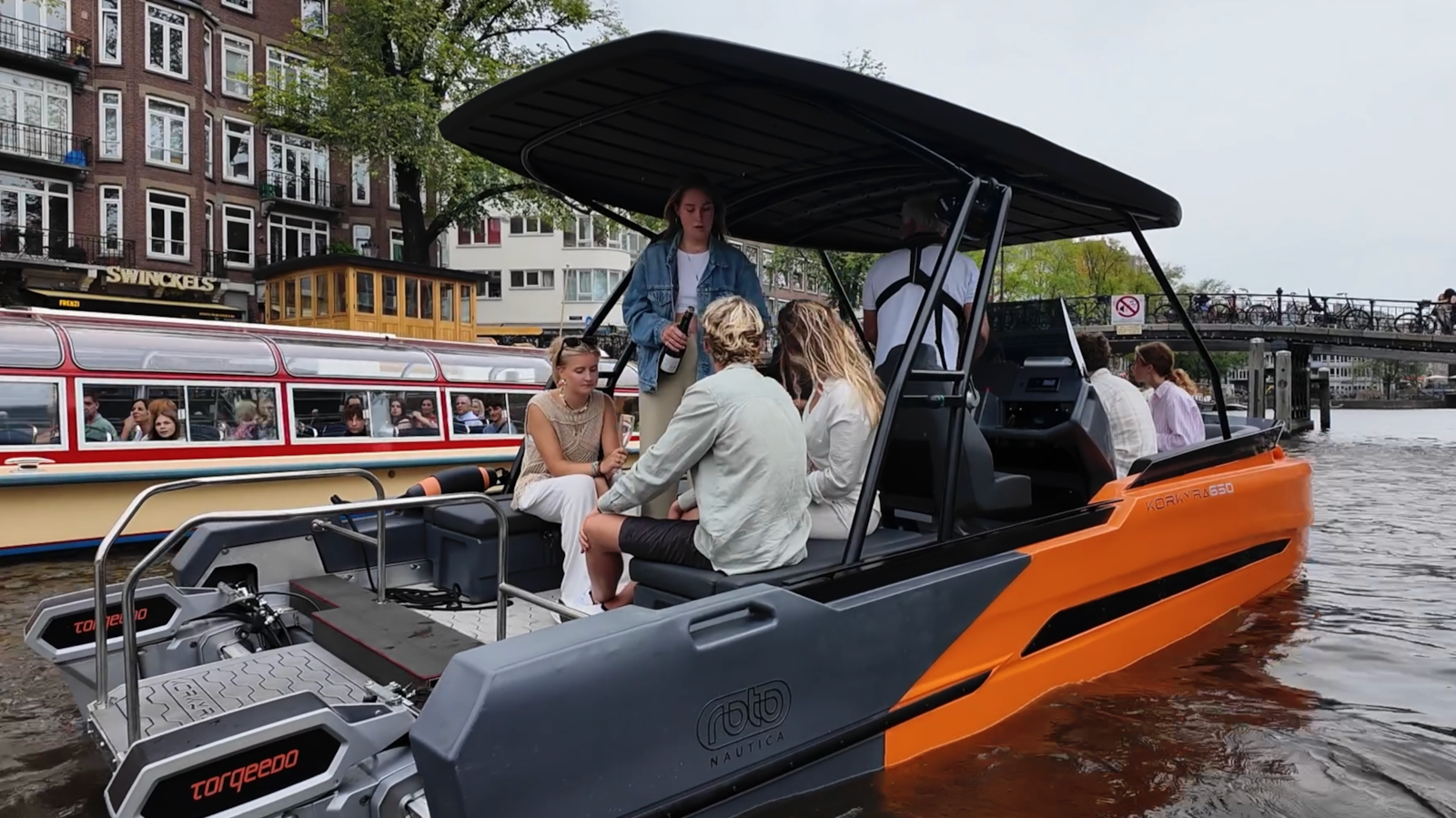 De Korkyra 650 maakte haar Nederlandse debuut op de Hiswa te water in september j.l. en een paar dagen na de beurs is Watersport-TV uitgenodigd voor een vaarimpressie in en rond Amsterdam. Op een trailerhelling langs het IJ wordt de boot te water gelaten. Importeur Gerke Smakman heeft nog even snel een doorvaartvignet aangeschaft zodat we koers kunnen zetten naar het centrum voor een tochtje door de grachten.