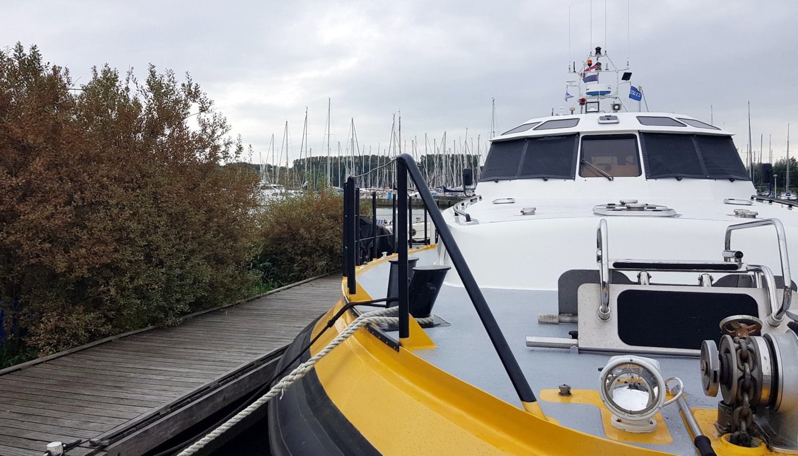 “Problemen Evert?” roept hij over het water. “Vliegroest man! Het hele voorschip zit vol bruine roestkringen en ik krijg ze er met geen mogelijkheid af! Die snoeiharde tweecomponentenlak, is kennelijk ook niet bestand tegen vliegroest. Heb jij iemand zien schuren of slijpen toen we weg waren?”