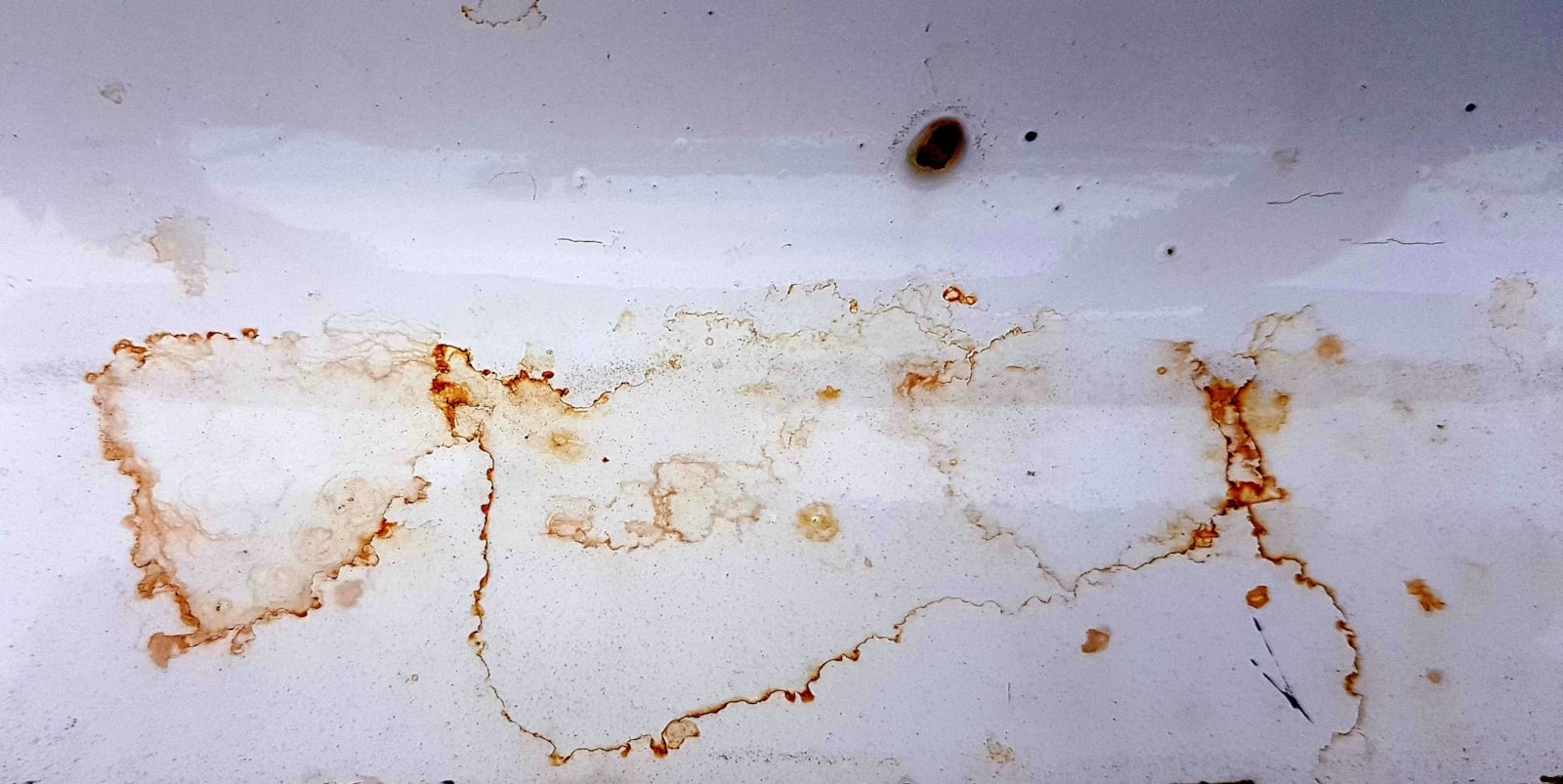 We gaan samen alle mogelijkheden langs en verdenkingen vliegen rond, maar het heeft geen zin. Die bruine laag moet er sowieso af!  “Oxaalzuur Evert. Dat is werkzaam. Ik heb nog wel een flesje staan, probeer maar even,” oppert mijn immer hulpvaardige buurman.