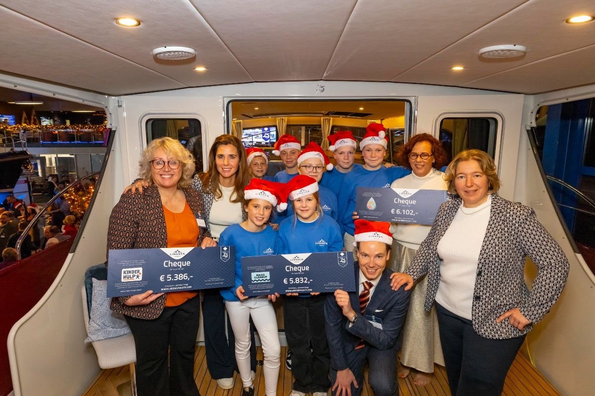 De overhandiging van de cheques vormde een bijzonder moment tijdens de Linssen Yachts Boat Show, een jaarlijks evenement waar het bedrijf haar nieuwste modellen presenteert aan een breed publiek.