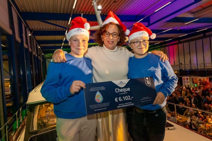 MAASBRACHT- Tijdens de afgelopen Linssen Yachts Boat Show heeft de botenbouwer cheques uitgereikt aan drie goede doelen waarvoor het bedrijf in het kader van het 75-jarig jubileum geld heeft ingezameld. De cheques werden symbolisch overhandigd door de jonge vierde generatie van de familie Linssen, waarmee het belang van maatschappelijk betrokken ondernemen ook naar de toekomst wordt benadrukt.