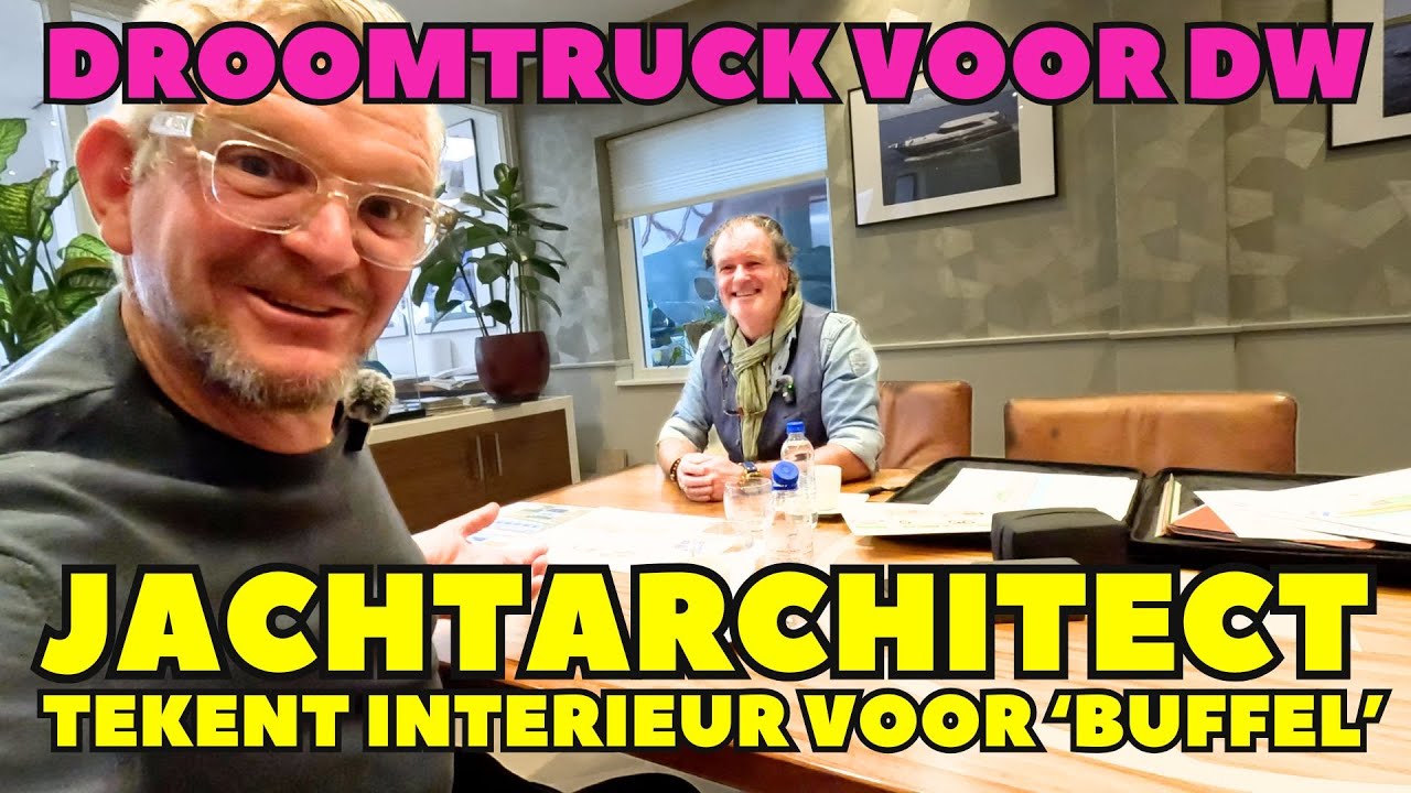 Dick William en Arnold kennen elkaar via de watersport, maar delen ook de liefde voor het kamperen. Zo moet ook het idee zijn ontstaan om een interieur te ontwerpen voor de M.A.N. Buffel van William. Voor zijn vlog, klik hier zocht Harinck de ontwerper op bij Van den Hoven Jachtbouw in Waspik. Daar worden op dit moment enkele schepen ontworpen door Arnold gebouwd.
