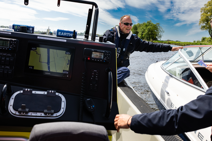 Naast handhaving gingen de mobiel verkeersleiders van Rijkswaterstaat in gesprek met vaarweggebruikers. Ze gaven onder andere uitleg over het feit dat een remweg van een binnenvaartschip langer is dan je denkt, waarom te snel varen zo gevaarlijk is en zwemmen in de vaargeul is verboden. “Voorlichting is een vast onderdeel van onze aanpak,” aldus Max. “Veel mensen willen het gewoon goed doen – soms helpt een simpel gesprek al om risico’s te voorkomen. Naast handhaving ging het reguliere werk ook gewoon door. We hielpen onder andere een omgeslagen zeilboot, sleepten een motorboot met pech naar de kant en luisterden naar schippers die betrokken waren bij een bijna-aanvaring. Op het water is het nooit saai, je weet nooit wat de dag brengt.”