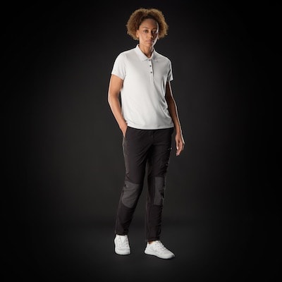 De iconische EVO Performance Stretch Trouser behoort nog altijd tot het assortiment broeken en shorts, maar dan met een herziene pasvorm, moderne esthetiek en lichter. Elastische zijpanelen en riemlussen zorgen voor een functionele pasvorm, terwijl de stof (95% FD Nylon, 5% Spandex) een 2-way stretch, UPF50, vochtregulerend en sneldrogend vermogen biedt. Het zitvlak, de knie- en achterzoom zijn verstevigd en de gecoate achterkant is waterafstotend.