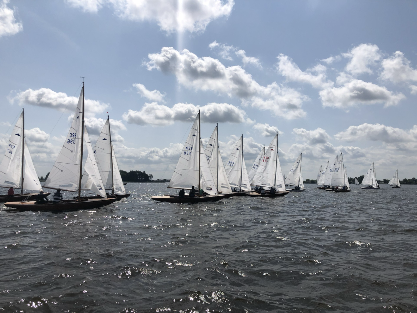 Zondag beloofde een prachtige dag te worden en dat werd het ook. Een strakke westenwind van tussen de 10 en 13 knopen zorgde ervoor dat het een schitterende zeildag werd. In de loop van de middag trok de wind zelfs nog aan tot 15 knopen. De omstandigheden moedigde de deelnemers aan op het scherpst van de snede te strijden.