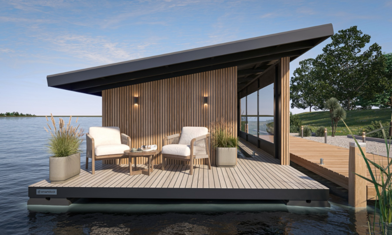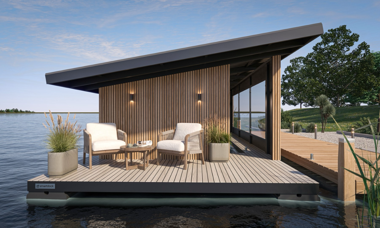 Smartdock combineert drie functies in één luxe, op maat gemaakt drijvend boothuis: stijlvolle overkapping/bescherming van de sloep, off-grid opladen via het laadsysteem met 16 geïntegreerde zonnepanelen en een slimme energieoplossing voor thuis door de bootaccu te koppelen aan het thuisnetwerk. Een SmartDock is makkelijk te plaatsen en vormt een functioneel en stijlvol verlengstuk van jouw tuin of vlonder.