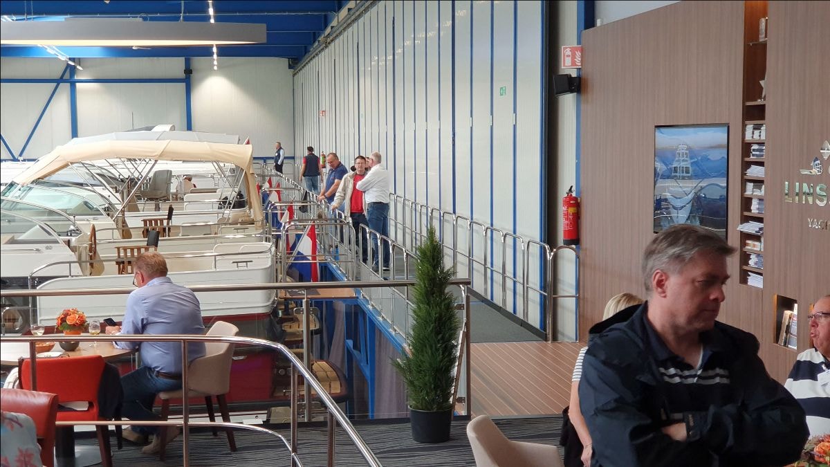 In de showroom wordt een uitgebreide selectie nieuwe en gebruikte jachten gepresenteerd. Bezoekers kunnen hier op hun gemak de jachten van buiten en van binnen tot in detail te bekijken. Van de hoogwaardige afwerking van de beschermende lak tot de gebruikte materialen in het interieur.