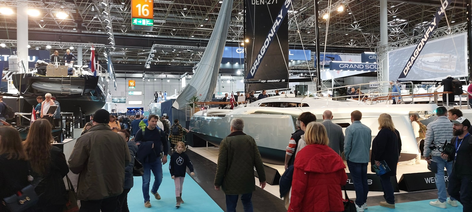 Hal 16: Zeiljachten in alle maten en klassen (tot meer dan 60 voet) en catamarans zullen het hart van zeilers sneller doen kloppen.
