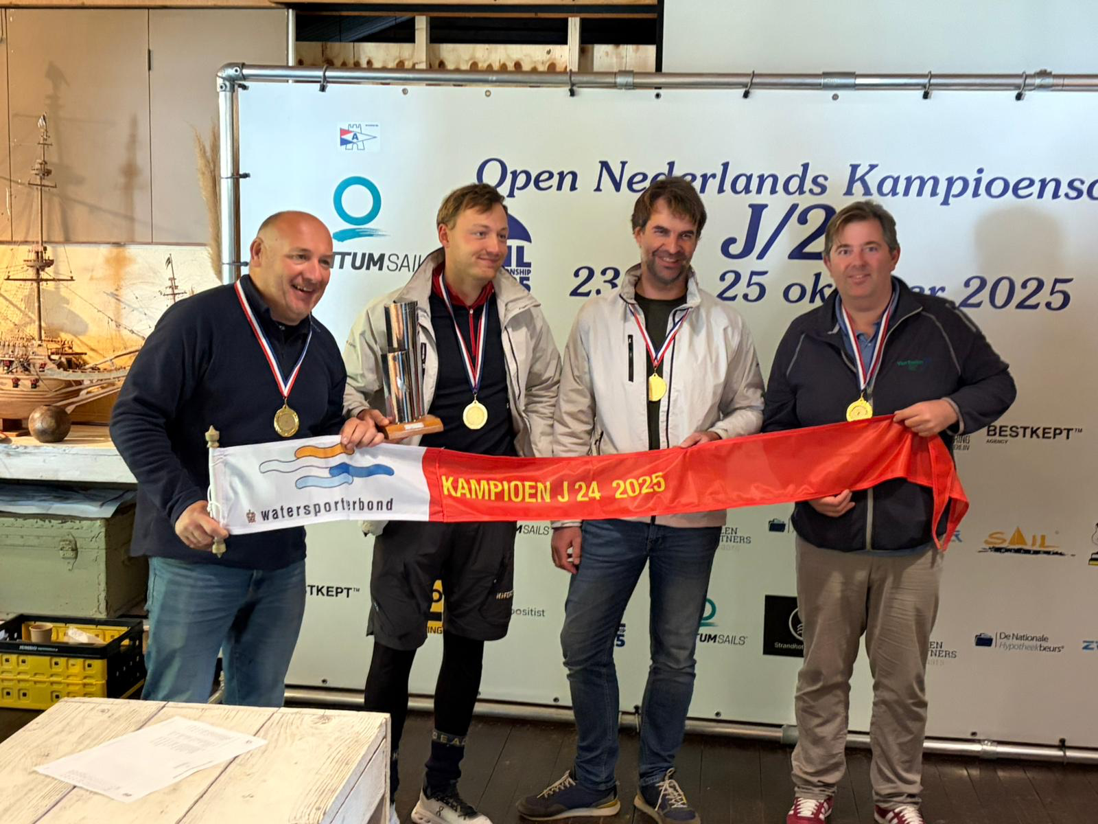 Om 11.00 uur vond de officiële prijsuitreiking plaats. Jack Around mocht de felbegeerde titel in ontvangst nemen, voor DutchJees op de tweede plaats en Joint Venture op het podium als nummer drie. De complete uitslag is te raadplegen via manage2sail onder de naam “Open Dutch Championship J/24 2025”