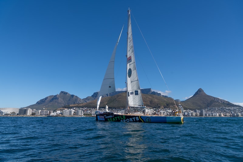 Die laatste twee dagen tot de finish waren ongelofelijk spannend. Team Power of Seattle Sports koos voor een zuidelijkere koers dan de rest van de vloot. Brandsma: “Dat was echt super. We hadden veel wind en kwamen in één keer heel dicht bij nummers twee en drie. In 24 uur hadden we 80 mijl goed gemaakt op de top twee, dus toen lagen we nog maar 8 mijl achter ze. Vervolgens moesten we naar binnen toe (noordelijk richting Kaapstad) en was die windvoorspelling ineens veranderd. Als gevolg daarvan kwamen wij iets langer in het windwak terecht dan de anderen. Zo verloren we in één nacht 60 mijl op die nummers twee en drie. Wij waren volledig gefocust op een podiumplek, maar plotseling waren we weer met Tongyeong in gevecht voor plek vier en vijf. We krijgen maar één keer per 24 uur voorspellingen aan boord. In dat etmaal is dat windwak zich anders gaan gedragen en voeren wij er middenin. Daardoor verloren we de vierde plek. Maar omdat we de scoring gate hebben gewonnen, pakken we drie punten extra. Die plus zes punten voor onze vijfde plek maakt dat we de score voor een tweede plaats hebben.”