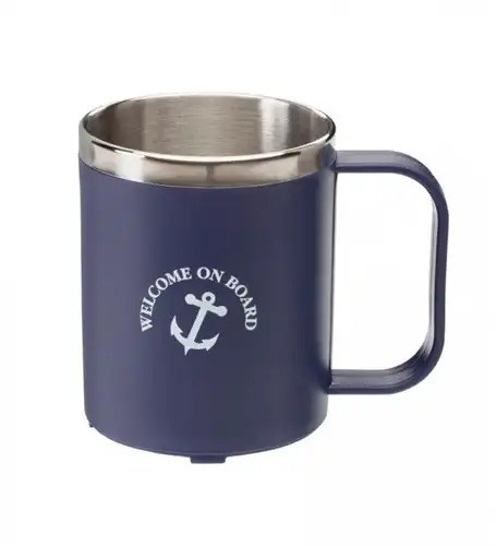 Deze koffiebeker met rvs binnenkant zorgt ervoor dat een warme drank zoals koffie of thee goed op temperatuur blijft. De beker heeft een inhoud van 20 cl en is voorzien van het Welcome on Board logo.