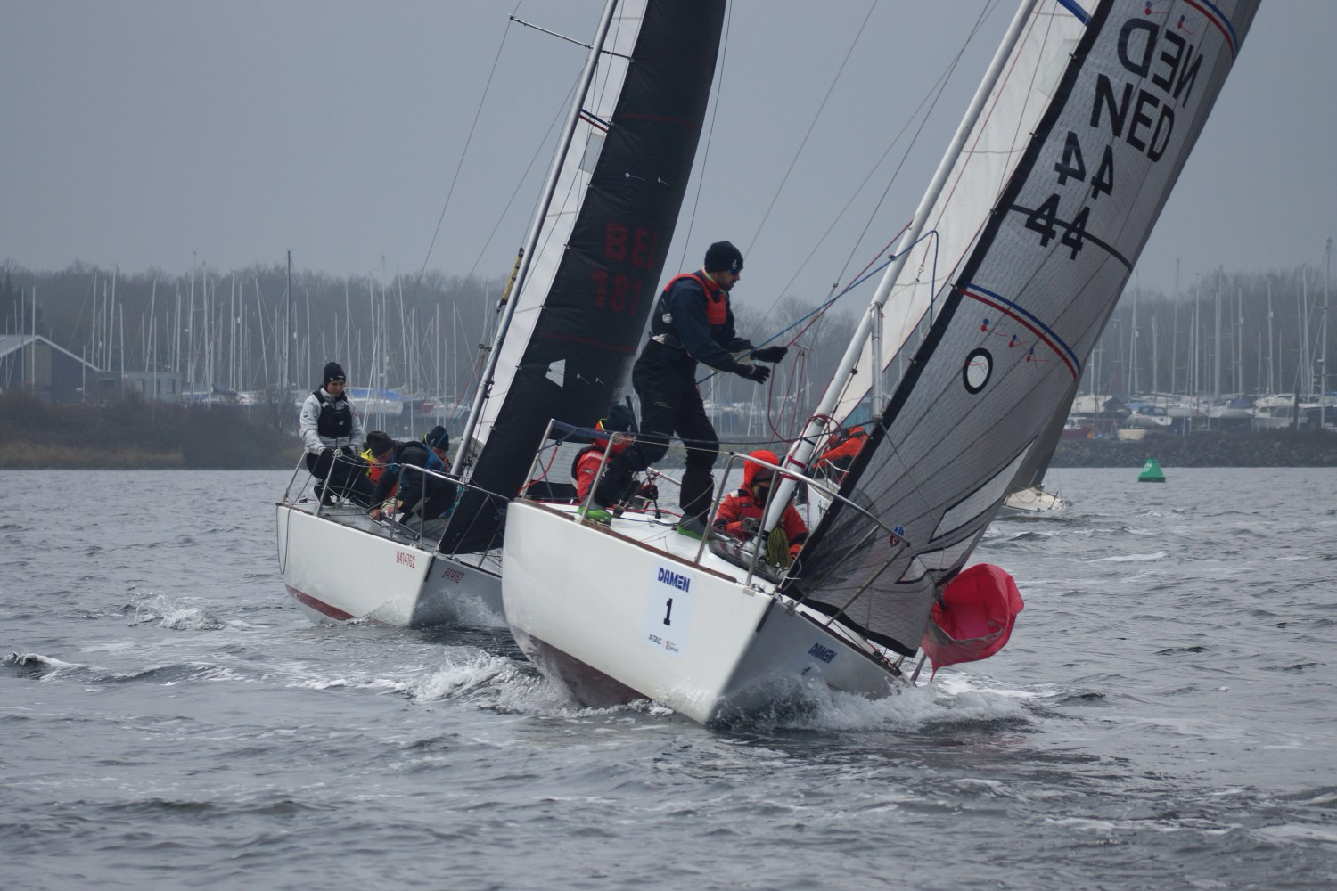 Veerse Meer – Vijftien teams verschenen afgelopen zondag aan de start van de derde wedstrijddag van de Wintersprinter op het Veerse Meer. Zij kregen te maken met echte winterse omstandigheden: gevoelstemperaturen onder nul, ijs aan dek en een gure wind. Het werd een mooie, maar bijzonder zware dag op het water.