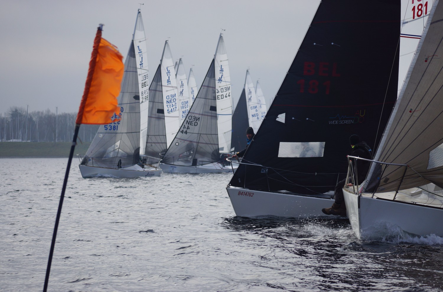 Al vroeg in de ochtend schoof een pakket laaghangende bewolking voor het dunne winterzonnetje, wat het weer extra guur maakte. De zuidoostenwind van 9 tot 12 knopen zorgde echter voor prima zeilcondities. Op de upwind-downwind baan bij Watersportvereniging Arne werden uiteindelijk vijf fraaie en competitieve races gevaren.