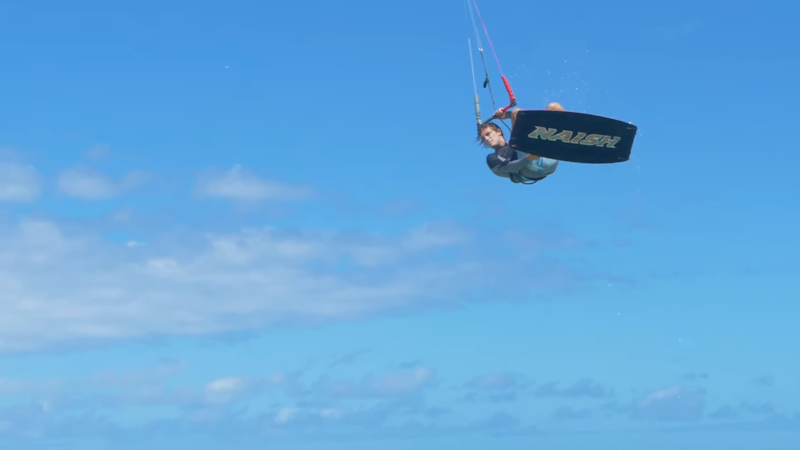 Kitesurfer Lasse Walker springt over vliegtuig