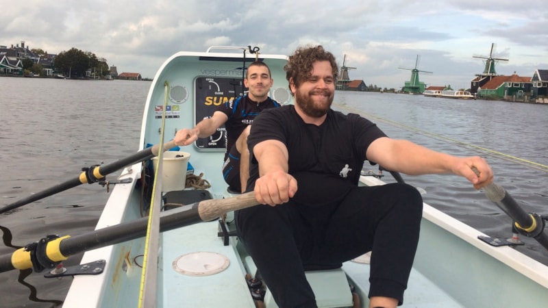IN EEN ROEIBOOT DE OCEAAN OVER