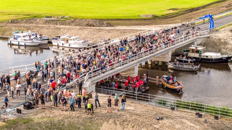 EANJUM - Met een flink kanonschot en een muziekprogramma dat festivalwaardig was, is de Saatsenbrêge over de Súd Ie bij Eanjum zaterdagavond geopend. De vaarroute van Dokkum naar Oostmahorn is daarmee geschikt voor boten in de DM-klasse met een hoogte tot 2,40 meter.